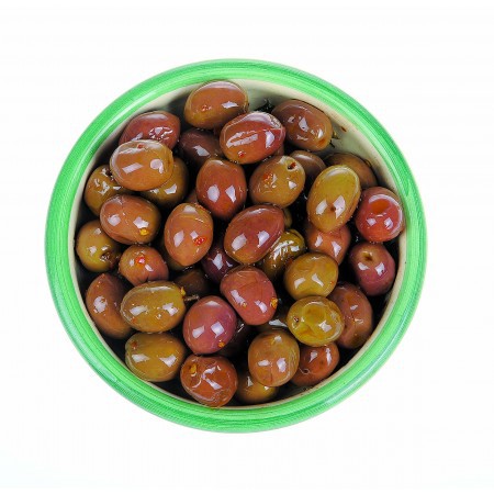 Olives de variété Marocaine dite tailladées. C'est à dire qu'elles sont légèrement tailladées pour permettre à l'huile et au piment de bien pénétrer dans le fruit et ainsi confire l'olive.Le piment est assez fort, ces olives conviennent aux personnes qui aiment les plats relevés. Olives avec noyaux.Ces olives préparées à la minute, vous seront livrées dans une cup scellée pour permettre une meilleure conservation au réfrigérateur d'environ 15 jours et une présentation parfaite pour vos apéritifs.ingrédients : olives , huile d'olive vierge extra (0,5%) piments (0,5%)